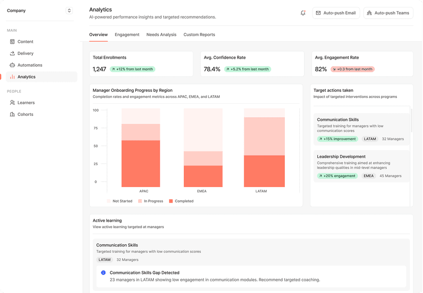 Arist then delivers everything 1:1 right in Teams, Slack, and SMS. Export content to your LMS and CMS in 1-click.