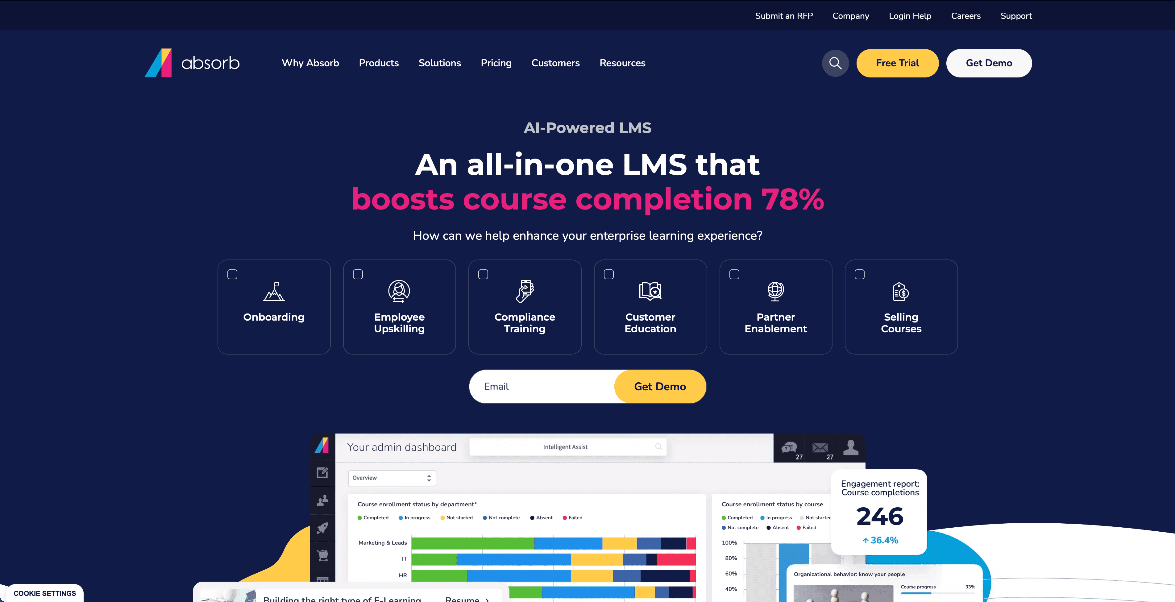 Absorb LMS | Custom pricing | Large enterprises | Complex reporting and management features |